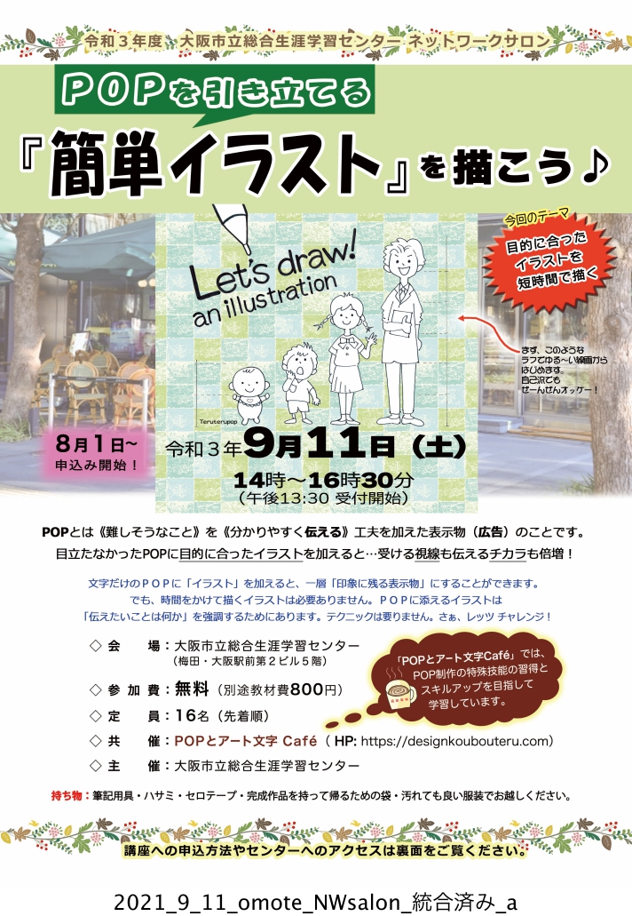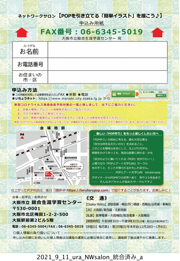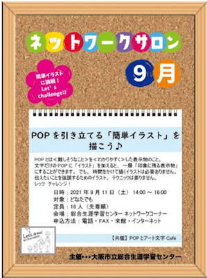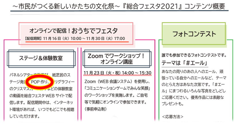 今年の『総合フェスタ2020』では「POPとアート文字カフェ」は、大阪市立総合学習センターのバックアップにより、オンライン配信での「ワークショップ」のスタイルで参加することになりました。