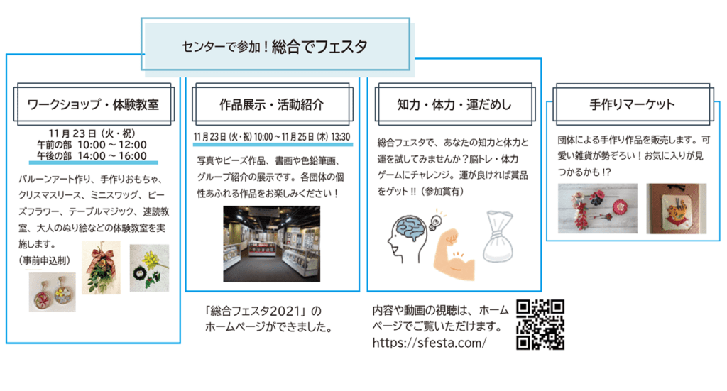 従来どうりの「センター」と「オンライン」での2種類の『総合フェスタ2021』はハイブリッドタイプ!